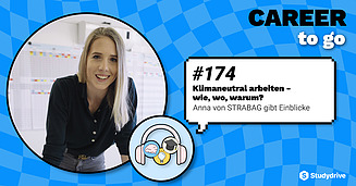 In der Podcast-Reihe "Career to Go" von Studydrive erzählt sie, wie Teams gemeinsam durch LEAN-Methoden optimale Bauprozesse gestalten und somit zur Nachhaltigkeit und CO2-Reduktion beitragen können. Außerdem verrät sie, was sie an ihrer Arbeit besonders reizt und warum es ihr wichtig ist, immer ein Stückchen besser zu werden.